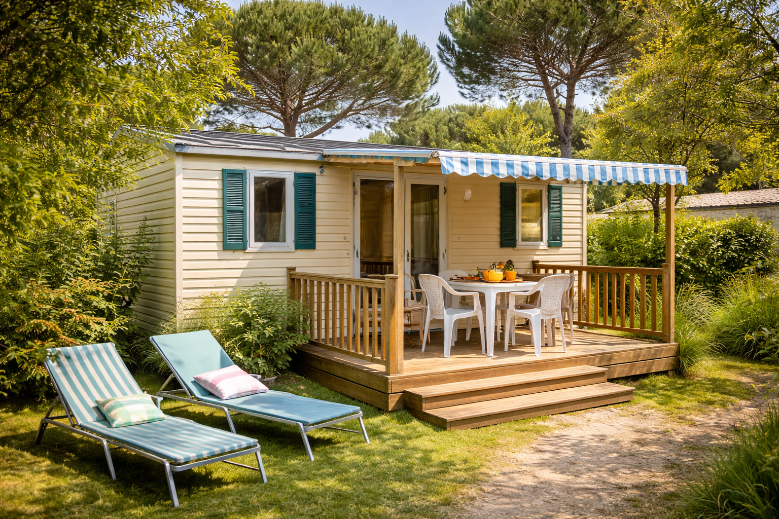 Ces mobil-homes proposent tout le confort essentiel pour un séjour réussi, avec des espaces bien pensés et une terrasse extérieure permettant de profiter pleinement des beaux jours et de l’ambiance conviviale du camping. Ils constituent une solution parfaite pour les séjours en famille ou entre amis, à la recherche de simplicité et de praticité.