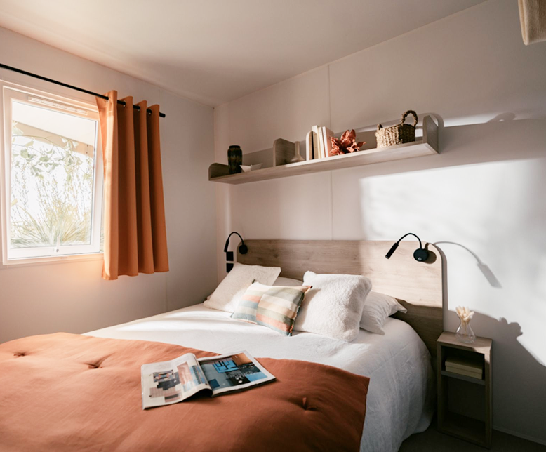 - literie confortable avec lit en 160 cm (sauf pour les mobil-homes 1 chambre),